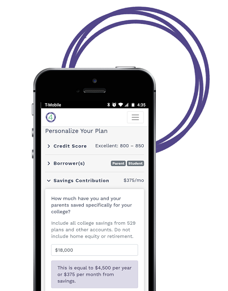 Compare detailed loan calculations in a single view for both parent and student financing based on your self-reported credit profile. Making the right choice can literally save thousands in costs!