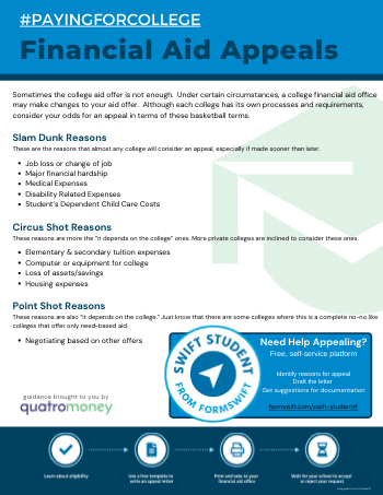 Sometimes the college aid offer is not enough. Under certain circumstances, a college financial aid office may make changes to your aid offer. Although each college has its own processes and requirements, consider your odds for an appeal in terms of these basketball terms.